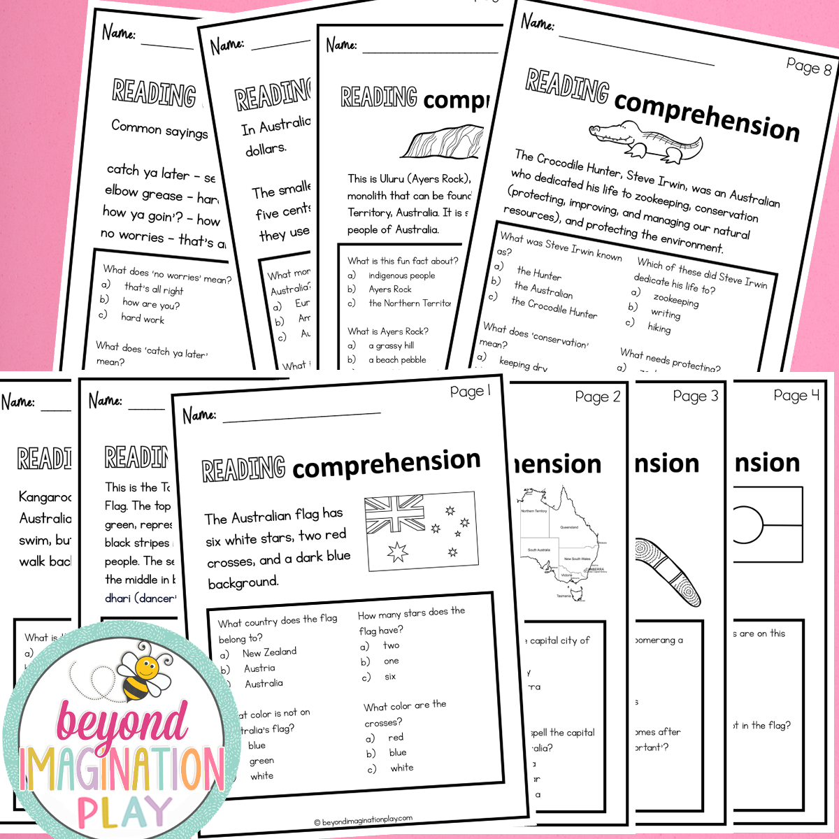 Get ready to dive into the incredible country of Australia with our super fun Country Study Fun Fact Booklet and Reading Comprehension Sheets!