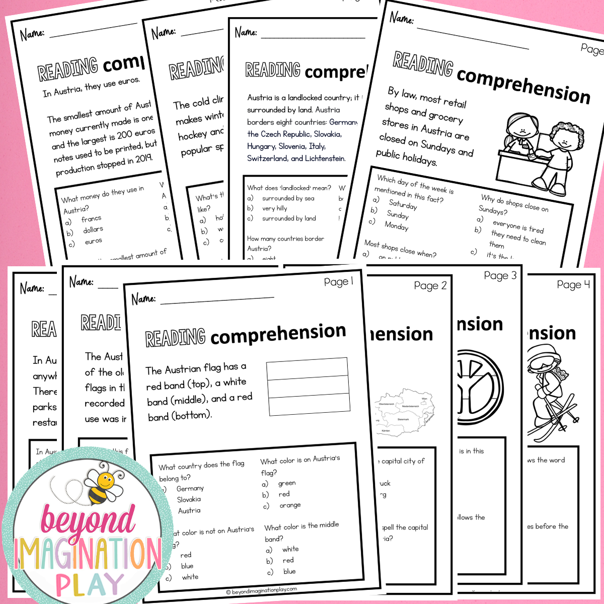Get ready to dive into the incredible country of Austria with our super fun Country Study Fun Fact Booklet and Reading Comprehension Sheets!