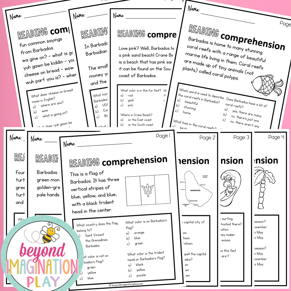 Get ready to dive into the incredible country of Barbados with our super fun Country Study Fun Fact Booklet and Reading Comprehension Sheets!