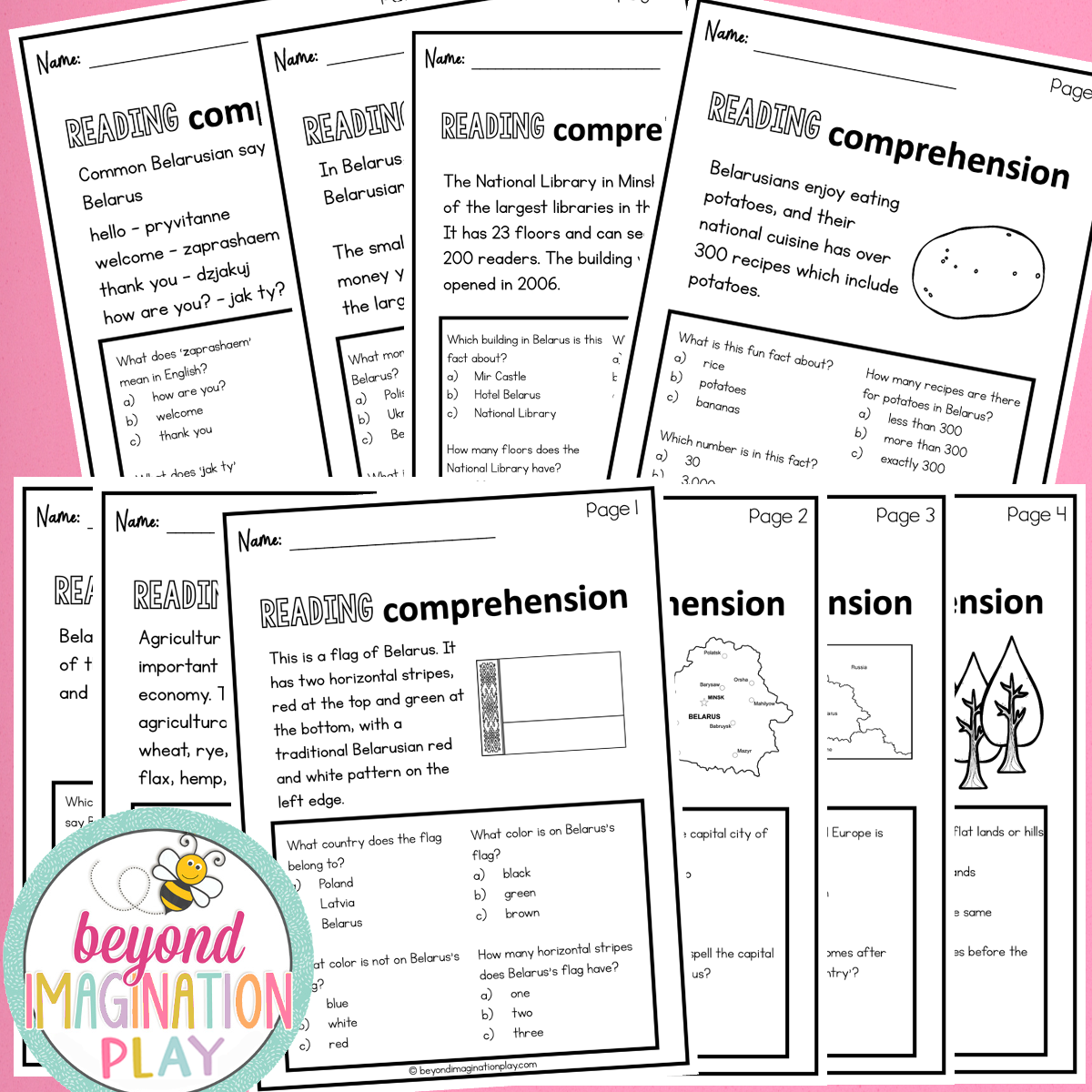 Get ready to dive into the incredible country of Belarus with our super fun Country Study Fun Fact Booklet and Reading Comprehension Sheets!