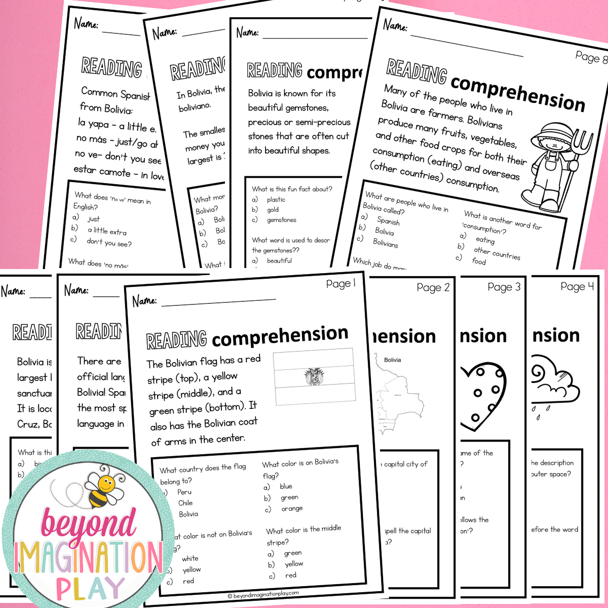 Get ready to dive into the incredible country of Bolivia with our super fun Country Study Fun Fact Booklet and Reading Comprehension Sheets!