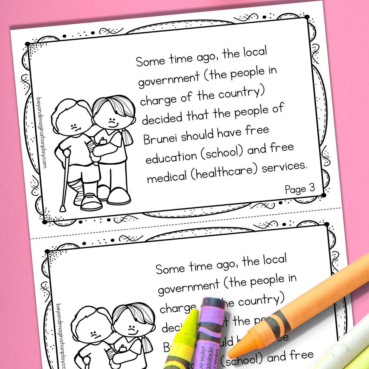 Let's explore the country of Brunei! Your little one(s) will love this fun-fact-filled country study project, reading comprehension passages (same passages as the fun facts) with multi-choice questions, differentiated booklet options, boarding passes, postcards, and country-themed fun worksheet activities!