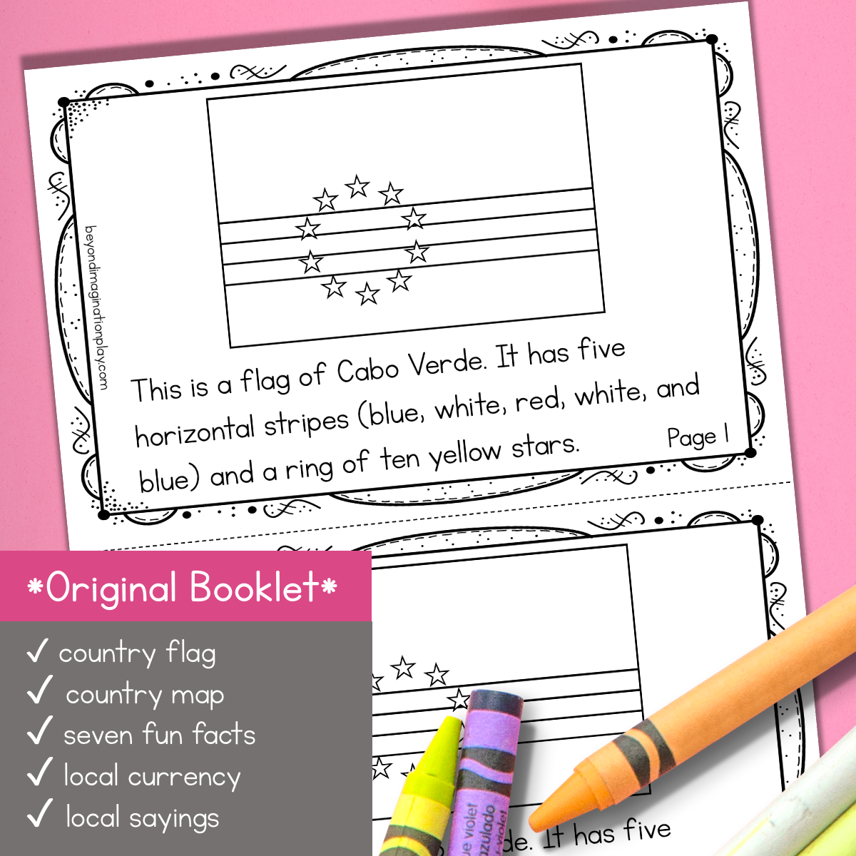 Let's explore the country of Cabo Verde! Your little one(s) will love this fun-fact-filled country study project, reading comprehension passages (same passages as the fun facts) with multi-choice questions, differentiated booklet options, boarding passes, postcards, and country-themed fun worksheet activities!