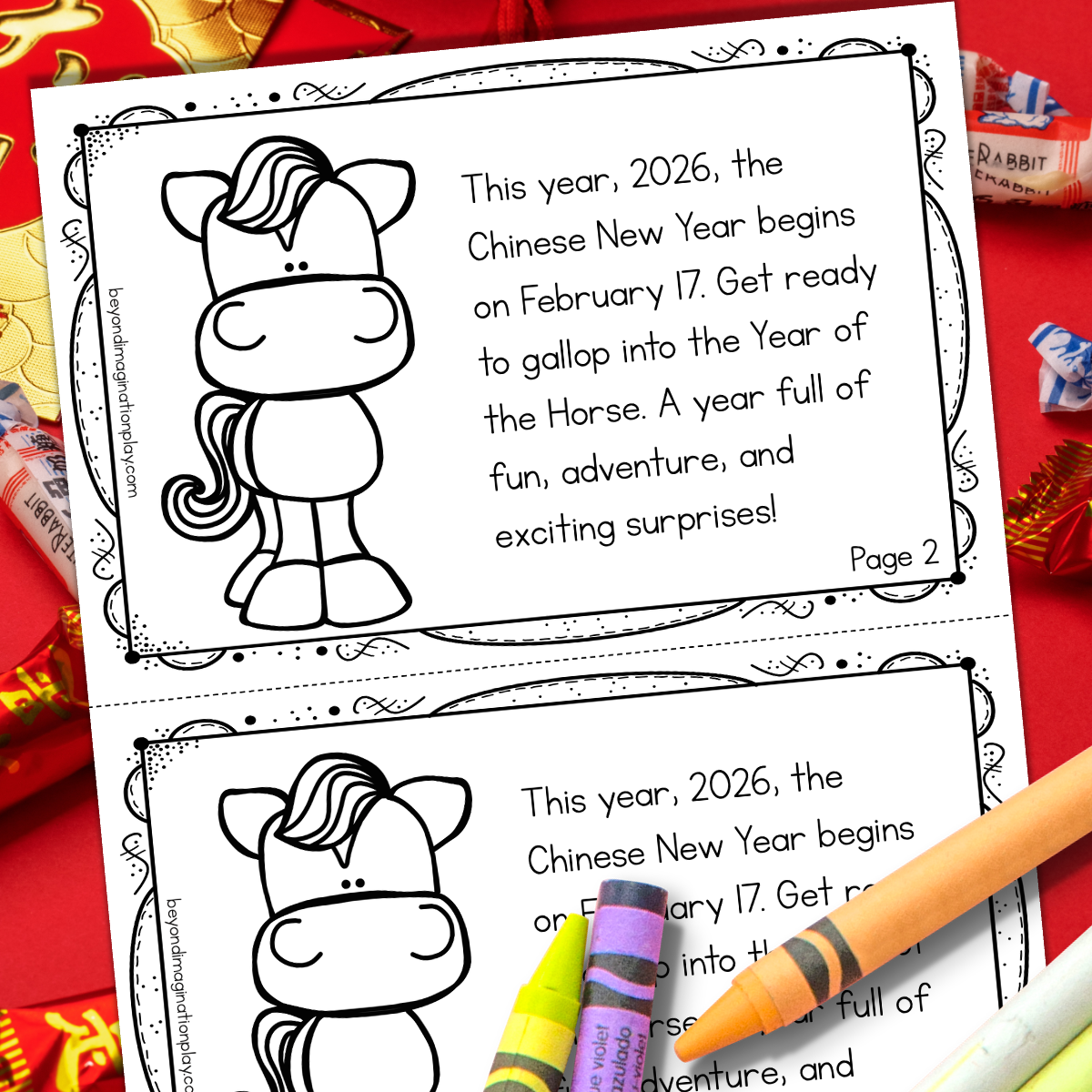 Celebrate the Lunar New Year of the Horse 2026 with your little one(s) in a fun and educational way with this differentiated learning printable set. It includes fun facts, reading comprehension sheets, activity sheets, bonus pages, and three differentiated options of the four original fun-fact booklets!
