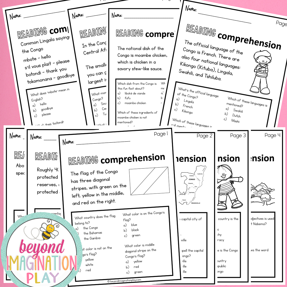 Get ready to dive into the incredible country of Congo with our super fun Country Study Fun Fact Booklet and Reading Comprehension Sheets!