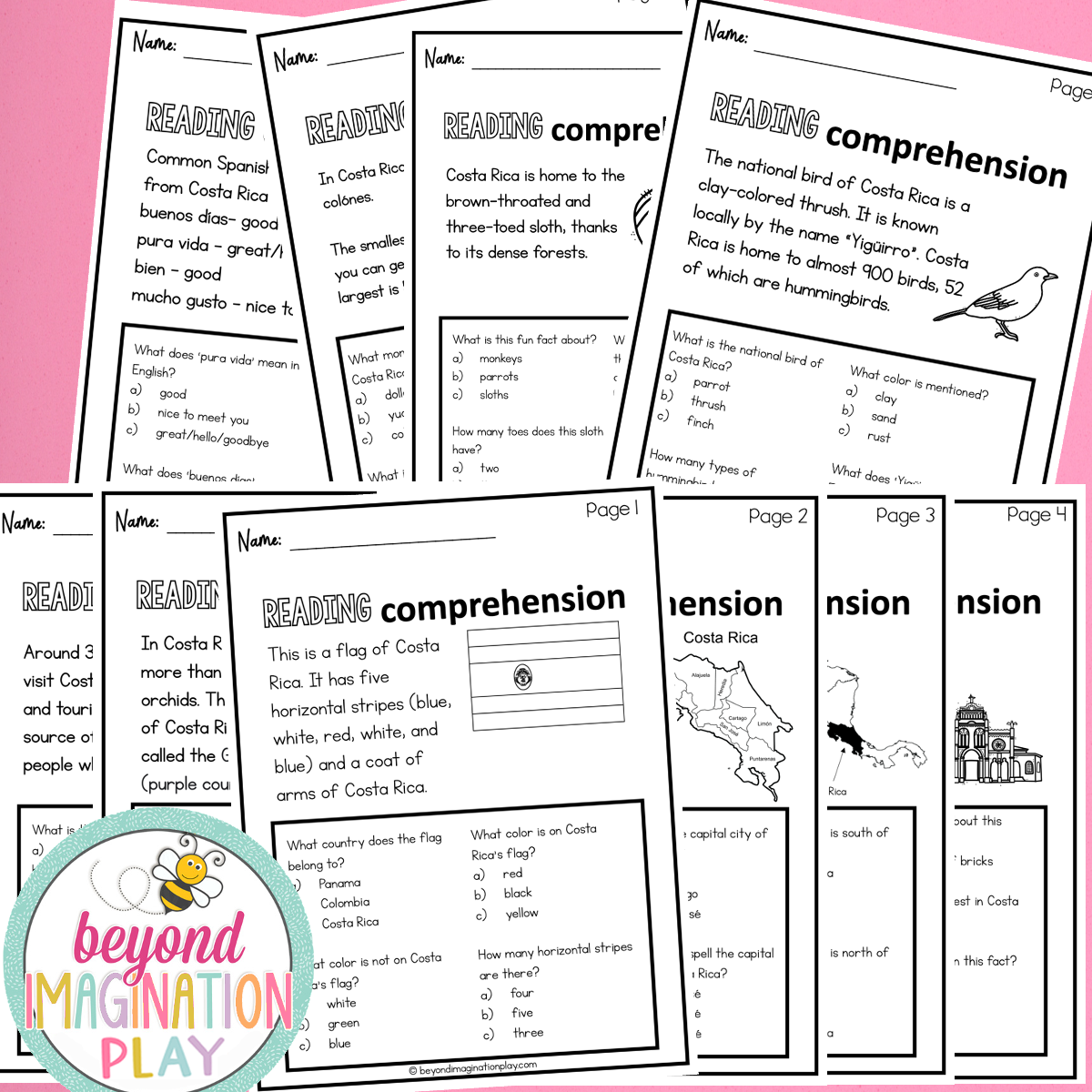 Get ready to dive into the incredible country of Costa Rica with our super fun Country Study Fun Fact Booklet and Reading Comprehension Sheets!