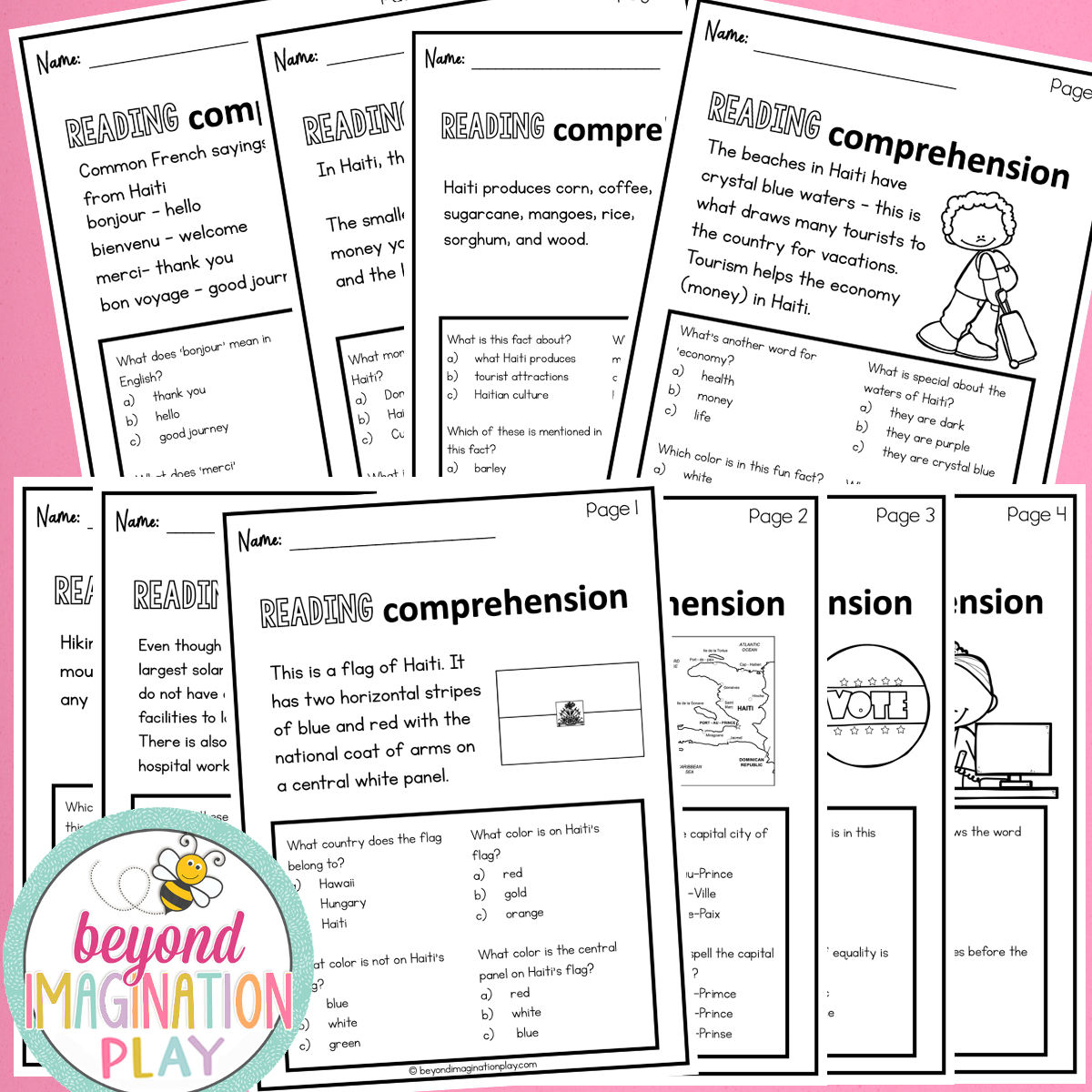 Get ready to dive into the incredible country of Haiti with our super fun Country Study Fun Fact Booklet and Reading Comprehension Sheets!