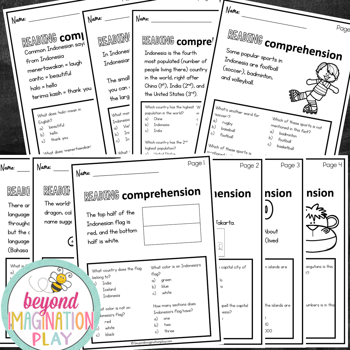 Get ready to dive into the incredible country of Indonesia with our super fun Country Study Fun Fact Booklet and Reading Comprehension Sheets!