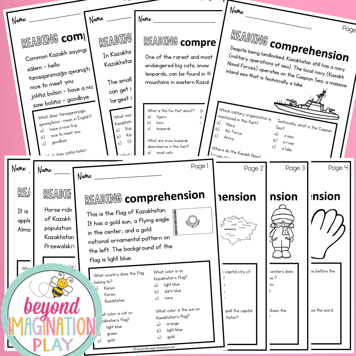 Get ready to dive into the incredible country of Kazakhstan with our super fun Country Study Fun Fact Booklet and Reading Comprehension Sheets!