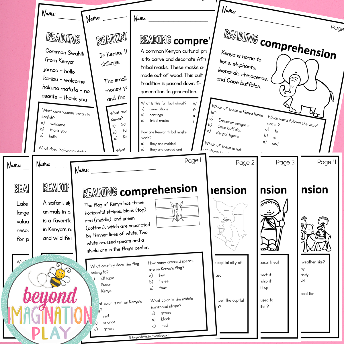 Get ready to dive into the incredible country of Kenya with our super fun Country Study Fun Fact Booklet and Reading Comprehension Sheets!
