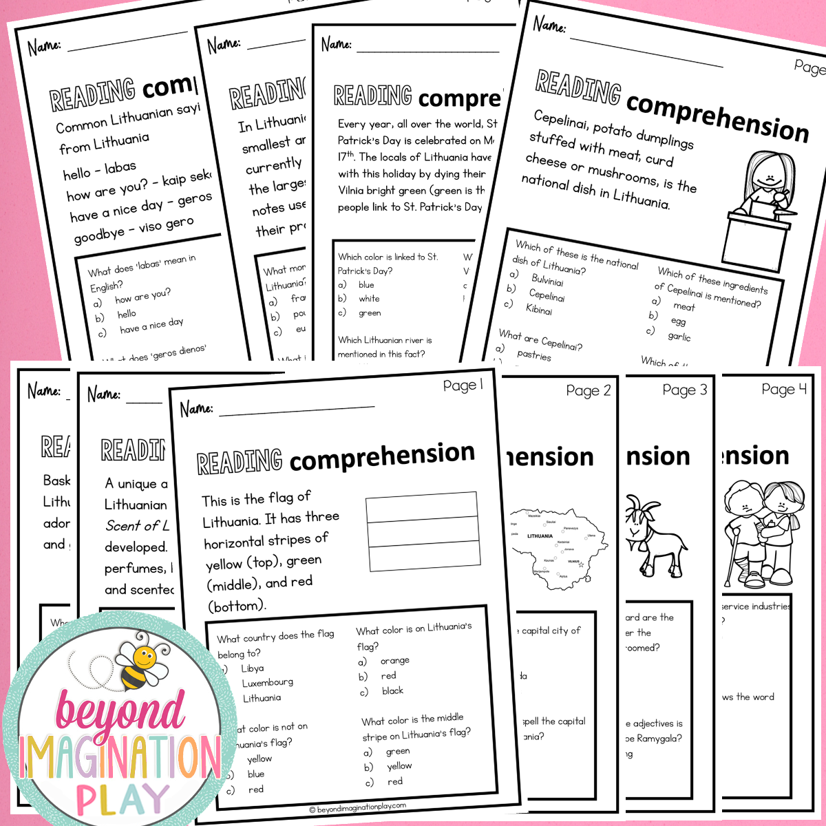 Get ready to dive into the incredible country of Lithuania with our super fun Country Study Fun Fact Booklet and Reading Comprehension Sheets!