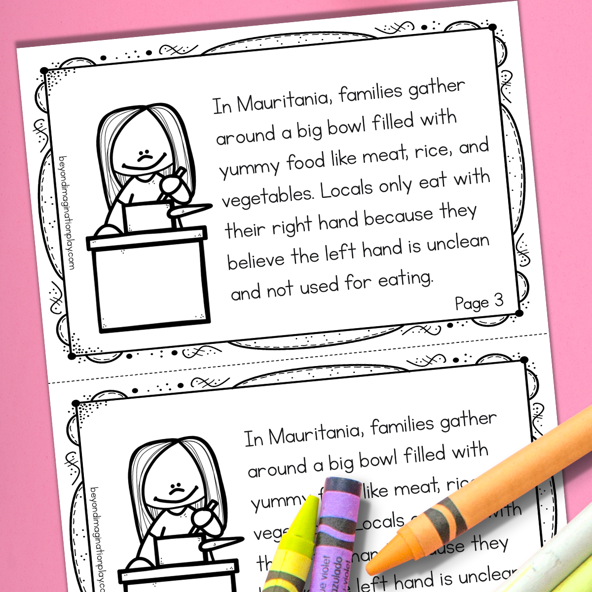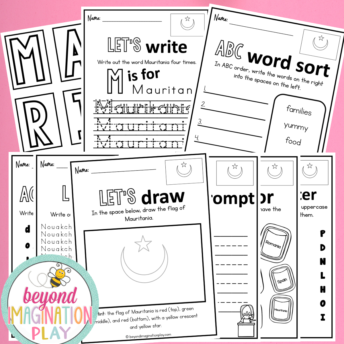 Let's explore the country of Mauritania! Your little one(s) will love this fun-fact-filled country study project, reading comprehension passages (same passages as the fun facts) with multi-choice questions, differentiated booklet options, boarding passes, postcards, and country-themed fun worksheet activities!