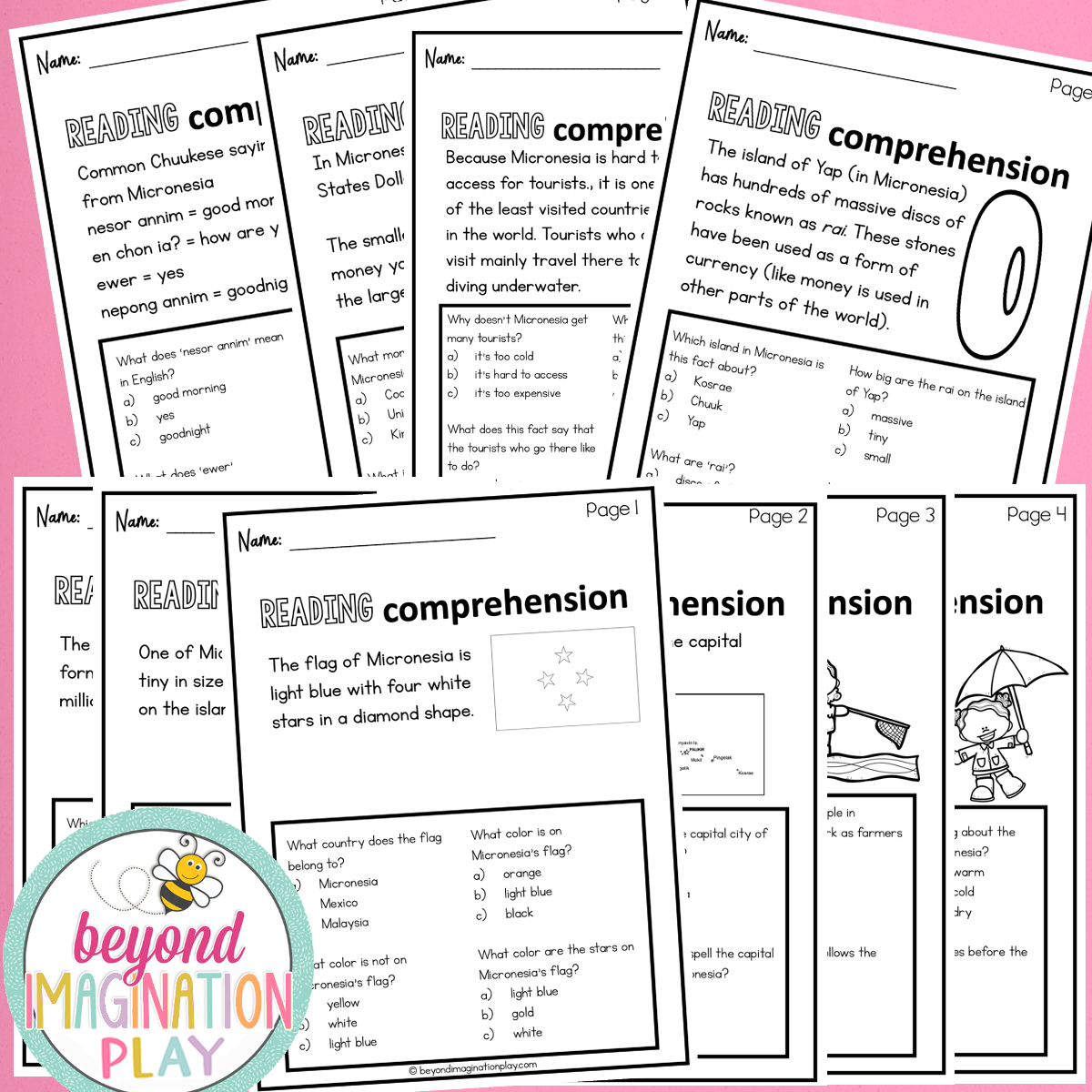 Get ready to dive into the incredible country of Micronesia with our super fun Country Study Fun Fact Booklet and Reading Comprehension Sheets!