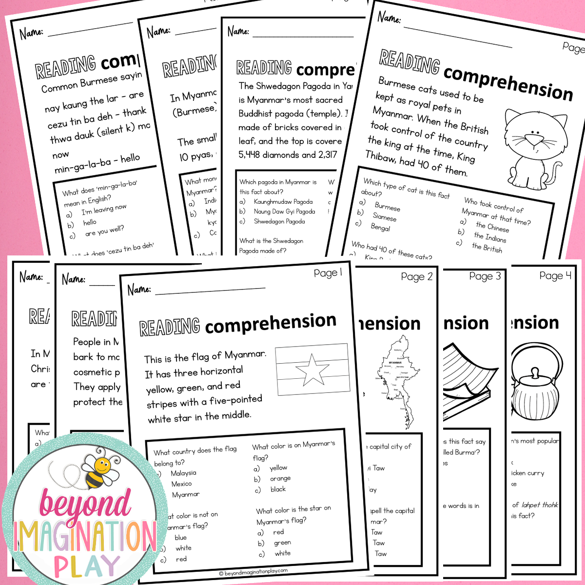 Get ready to dive into the incredible country of Myanmar with our super fun Country Study Fun Fact Booklet and Reading Comprehension Sheets!