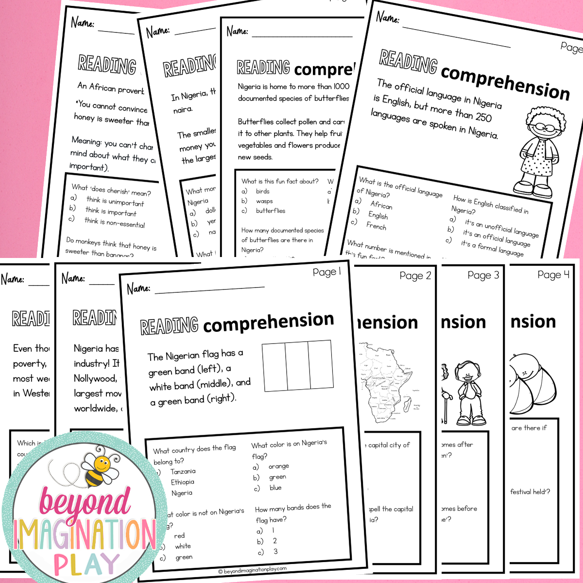 Get ready to dive into the incredible country of Nigeria with our super fun Country Study Fun Fact Booklet and Reading Comprehension Sheets!