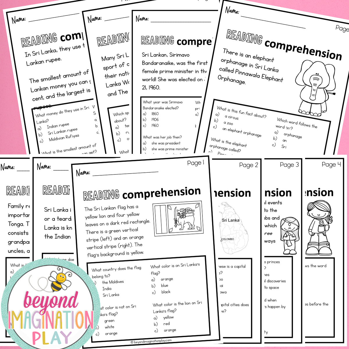Get ready to dive into the incredible country of Sri Lanka with our super fun Country Study Fun Fact Booklet and Reading Comprehension Sheets!