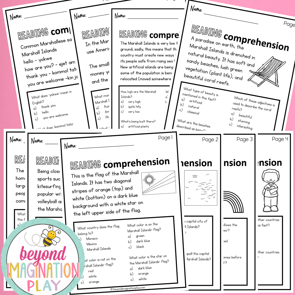 Get ready to dive into the incredible country of The Marshall Islands with our super fun Country Study Fun Fact Booklet and Reading Comprehension Sheets!